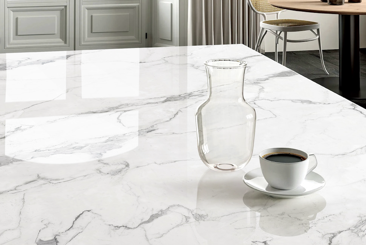 A glossy, reflective finish that enhances the stone's natural color and veining for a luxurious look.