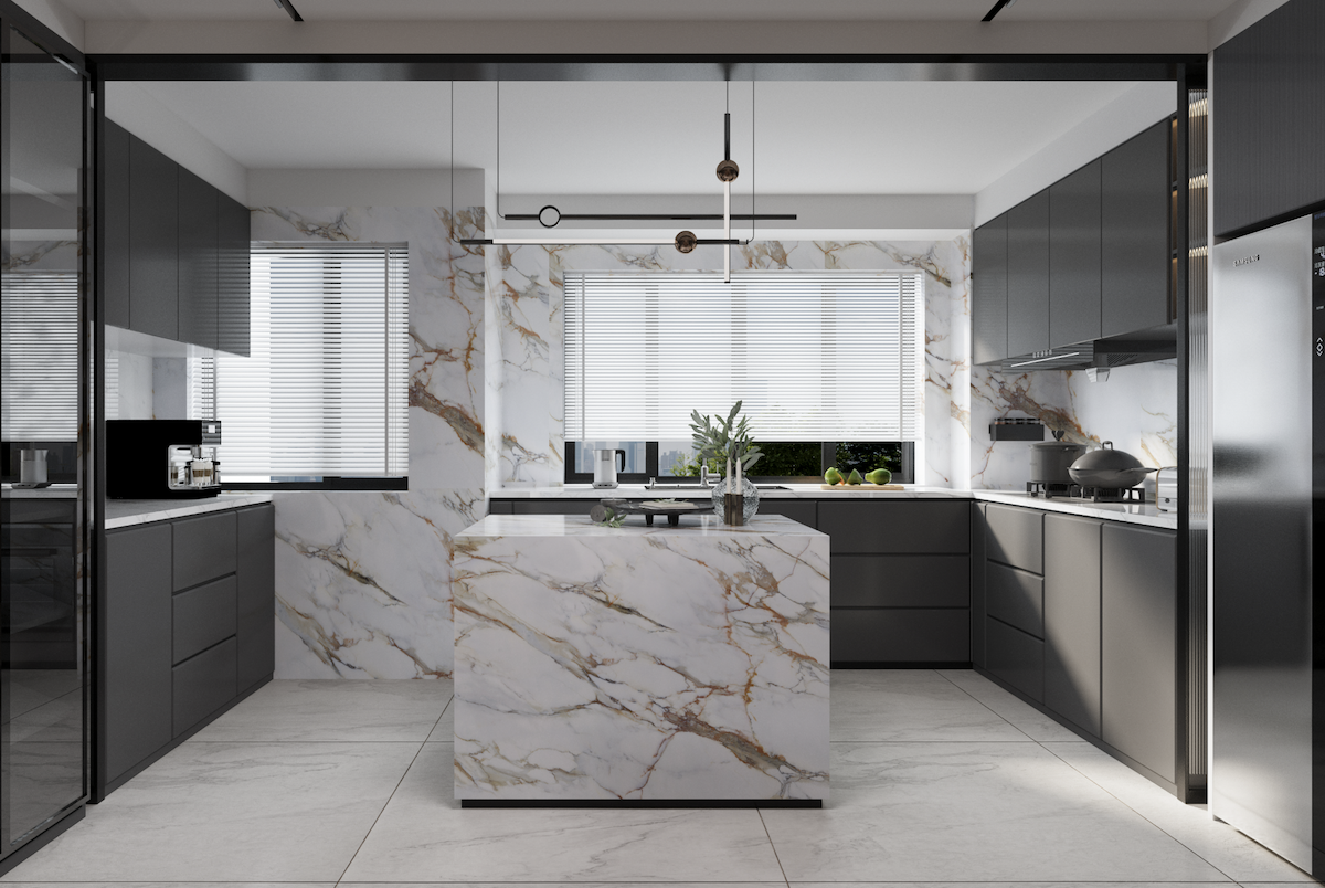 A glossy, reflective finish that enhances the stone's natural color and veining for a luxurious look.